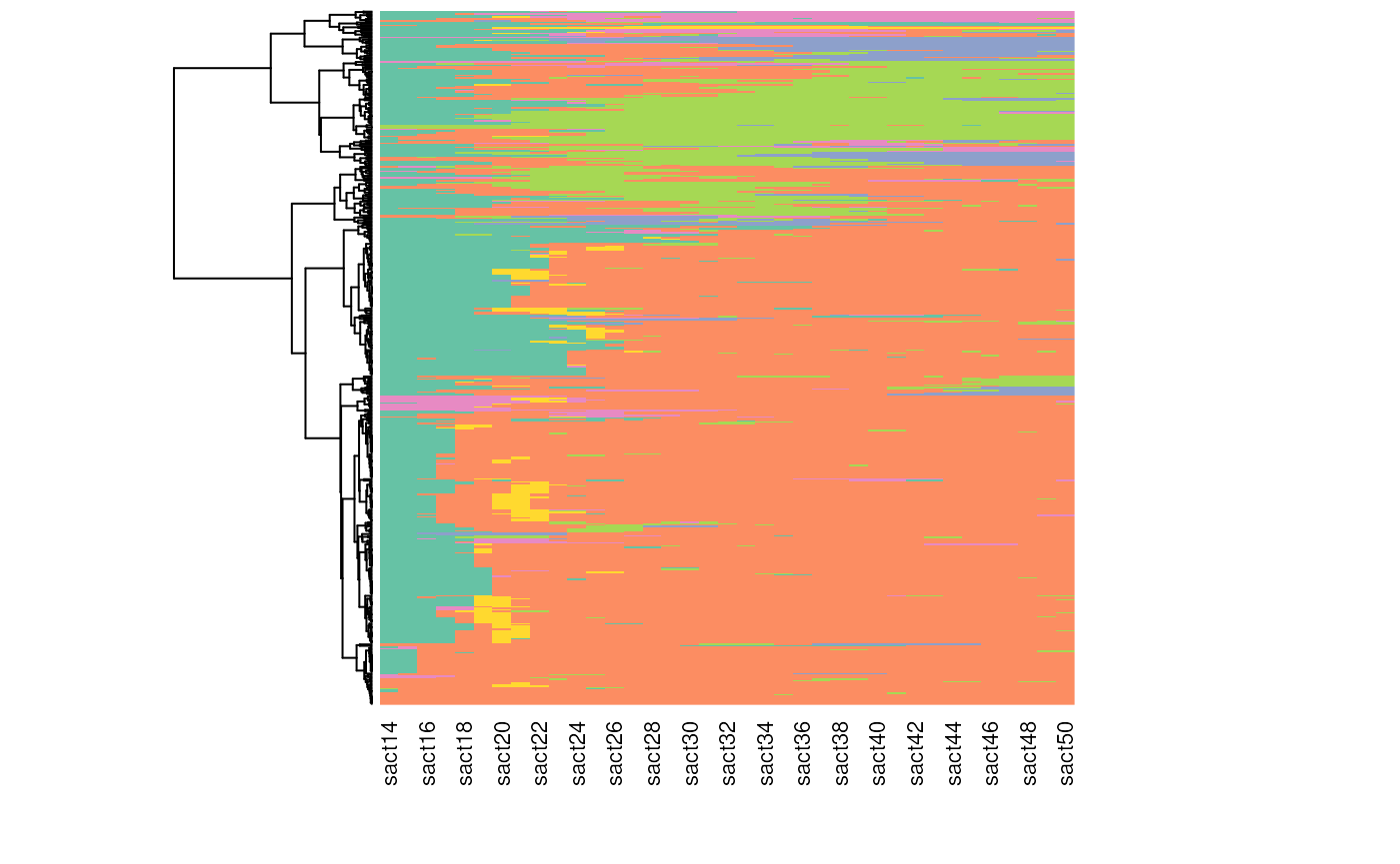 for(i in 1:nbcl.GIMSA) seqdplot(seqfilles[part.GIMSA==i,], xtlab=1:15, border=NA, with.legend=FALSE)