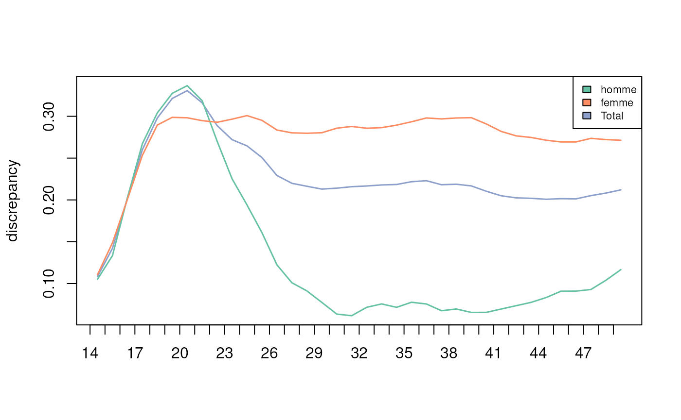 d’activité observé chaque année entre 14 ans et 50 ans.